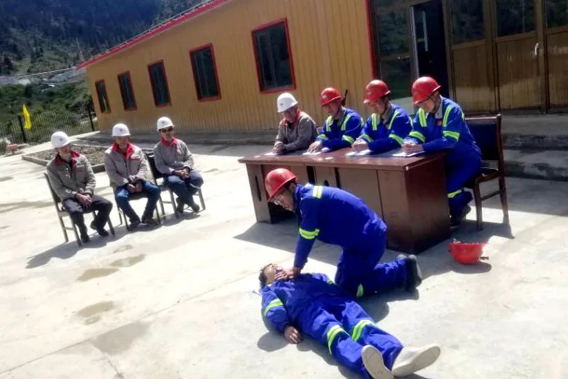 鑫源礦業組織全體員工觀看安全事故警示教育片,開展礦區醫療急救應急演練等活動,并在辦公樓張貼宣傳海報、懸掛橫幅,宣傳安全理念。