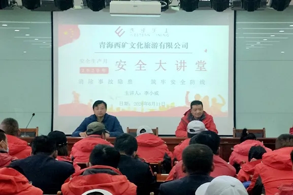 西礦文旅公司在茶卡鹽湖景區組織開展“安全大講堂”講座,講座結合近年來省內外景區安全事故案例,對影響安全事故的心理因素、事故原因分析、景區安全防治與管理等相關旅游景區安全管理知識進行詳細解讀。