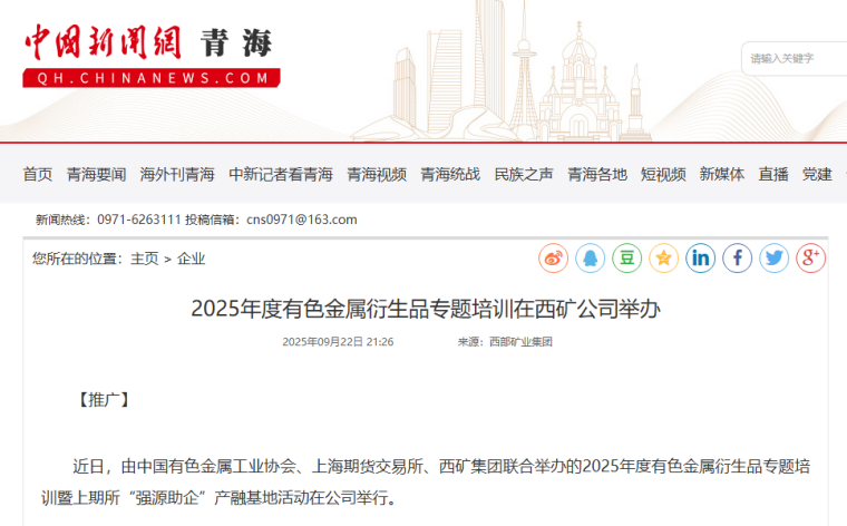 近日,由中國(guo)有色金屬工業協會、上海期(qi)貨(huo)交易所、西礦集團聯合(he)舉辦(ban)的2025年度有色金屬衍生品專題培訓暨上期(qi)所“強源助企”產融(rong)基地活動在公司舉行。