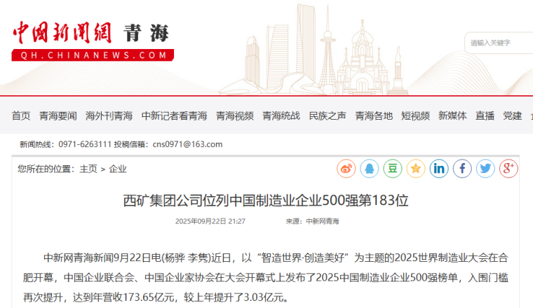 西部(bu)礦業(ye)集團以(yi)營業(ye)收入687.96億元(yuan)入圍(wei)中國制造業(ye)企(qi)業(ye)500強,排名第(di)183位,較上(shang)年提升(sheng)28位。