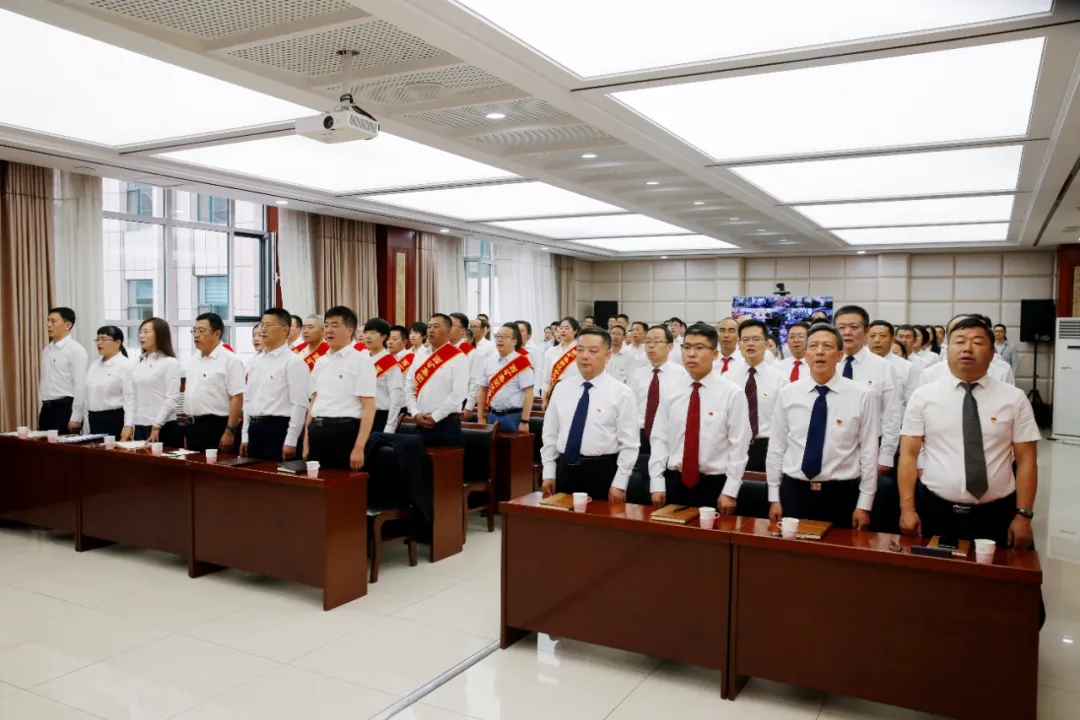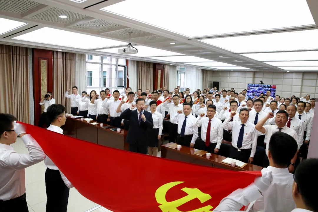 會議在激昂的國歌聲中開始,回顧黨的歷史、慶祝黨的生日、謳歌黨的偉績、總結黨建工作經驗、表彰先進典型。白永強宣讀《關于表彰先進基層黨組織、優秀共產黨員和黨務工作者的通知》,李威帶領新發展黨員進行入黨宣誓,老黨員集體重溫入黨誓詞。