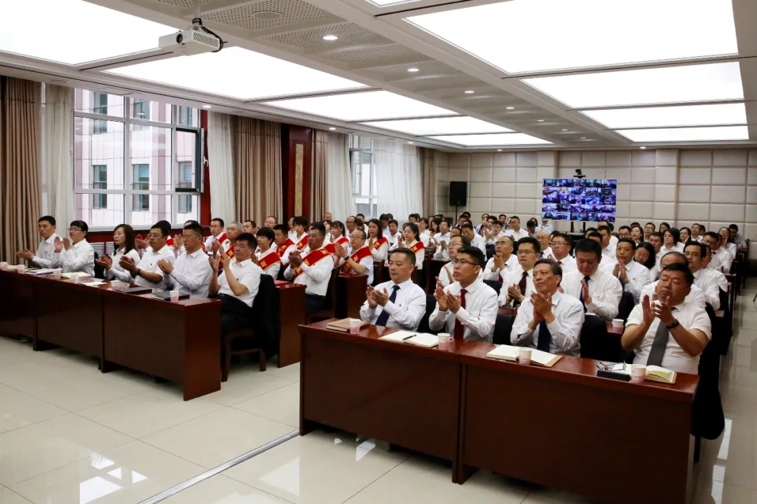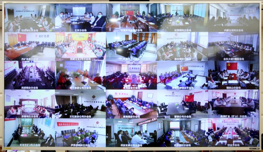 會議以視頻形式召開。集團、股份公司黨委班子成員及兩機關全體黨員108人現場參會;各基層黨組織班子成員,分(子)公司黨員代表共455人視頻參會。