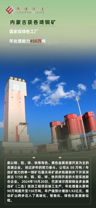 高質量發展是企業(ye)永恒的主(zhu)題(ti)。近年(nian)來(lai),西部礦業(ye)始終牢記(ji)“國(guo)之大者”,以“做(zuo)強礦山主(zhu)業(ye)”為著(zhu)力點,深化改(gai)革激發內生(sheng)動力,科(ke)技創新賦能產業(ye)升級,綠色轉型踐行生(sheng)態(tai)使命,“礦山版圖”不斷壯(zhuang)大,現(xian)擁有8個探礦權,16個采(cai)礦權,開發運行西藏玉龍銅(tong)(tong)礦(kuang)(kuang)(kuang)、青(qing)海(hai)錫鐵山(shan)鉛鋅(xin)礦(kuang)(kuang)(kuang)、四(si)川(chuan)呷村(cun)銀多金(jin)屬礦(kuang)(kuang)(kuang)、內(nei)(nei)蒙(meng)古獲各(ge)琦(qi)銅(tong)(tong)礦(kuang)(kuang)(kuang)、四(si)川(chuan)會東大梁(liang)鉛鋅(xin)礦(kuang)(kuang)(kuang)、新疆哈密(mi)黃山(shan)南銅(tong)(tong)鎳礦(kuang)(kuang)(kuang)、新疆哈密(mi)白山(shan)泉鐵礦(kuang)(kuang)(kuang)、甘肅肅北七角井釩及鐵礦(kuang)(kuang)(kuang)、內(nei)(nei)蒙(meng)古雙利鐵礦(kuang)(kuang)(kuang)、格爾(er)木拉陵高里(li)河下游(you)鐵多金(jin)屬礦(kuang)(kuang)(kuang)等十(shi)座大型礦(kuang)(kuang)(kuang)山(shan),公司保(bao)有有色(se)金(jin)屬(shu)及貴金(jin)屬(shu)資源儲量(liang)(liang)1128.18萬噸,黑色(se)金(jin)屬(shu)資源儲量(liang)(liang)2.95億噸,經營效益越(yue)來(lai)(lai)越(yue)高(gao),綜合(he)實力(li)(li)越(yue)來(lai)(lai)越(yue)強,社(she)會影(ying)響力(li)(li)越(yue)來(lai)(lai)越(yue)大,持(chi)續推動企業做(zuo)(zuo)強做(zuo)(zuo)優做(zuo)(zuo)大,不斷加(jia)快高(gao)質量(liang)(liang)發展步伐,位居(ju)國(guo)內特(te)大型礦(kuang)山企業(ye)(ye)前列(lie),在礦(kuang)業(ye)(ye)報國(guo)的奮進路上書(shu)寫了壯麗的西(xi)礦(kuang)詩篇。