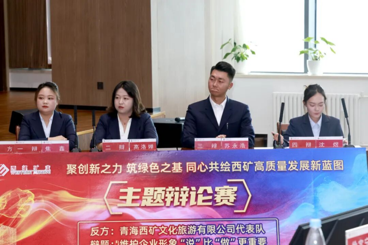 9月24日,由集(ji)團(tuan)公(gong)(gong)司黨委(wei)、工會、團(tuan)委(wei)共同舉(ju)辦的(de)“聚創新之(zhi)力 筑綠色(se)之(zhi)基 同心(xin)共繪(hui)西(xi)礦(kuang)高(gao)質量(liang)(liang)發展(zhan)新藍(lan)圖(tu)”主(zhu)題辯(bian)論賽決(jue)賽舉(ju)行(xing),青(qing)海西(xi)礦(kuang)信息技術(shu)有限公(gong)(gong)司代(dai)(dai)表隊(dui)和(he)青(qing)海西(xi)礦(kuang)文化旅游有限公(gong)(gong)司代(dai)(dai)表隊(dui)圍繞“企(qi)業形象的(de)維(wei)護”辯(bian)題進行(xing)巔峰(feng)對決(jue),在唇槍(qiang)舌劍(jian)中不斷突破(po)自我,憑借自身優秀(xiu)表達能力和(he)深刻洞察力,在言語的(de)較(jiao)量(liang)(liang)和(he)思想的(de)碰撞(zhuang)中匯聚起(qi)助推公(gong)(gong)司高(gao)質量(liang)(liang)發展(zhan)的(de)磅礴力量(liang)(liang)。集(ji)團(tuan)公(gong)(gong)司黨委(wei)副(fu)書記、總裁吳世周及(ji)集(ji)團(tuan)、股份兩公(gong)(gong)司班(ban)子(zi)成員,各職能中心(xin)(部室(shi))及(ji)各分(fen)子(zi)公(gong)(gong)司代(dai)(dai)表現場觀看(kan)。